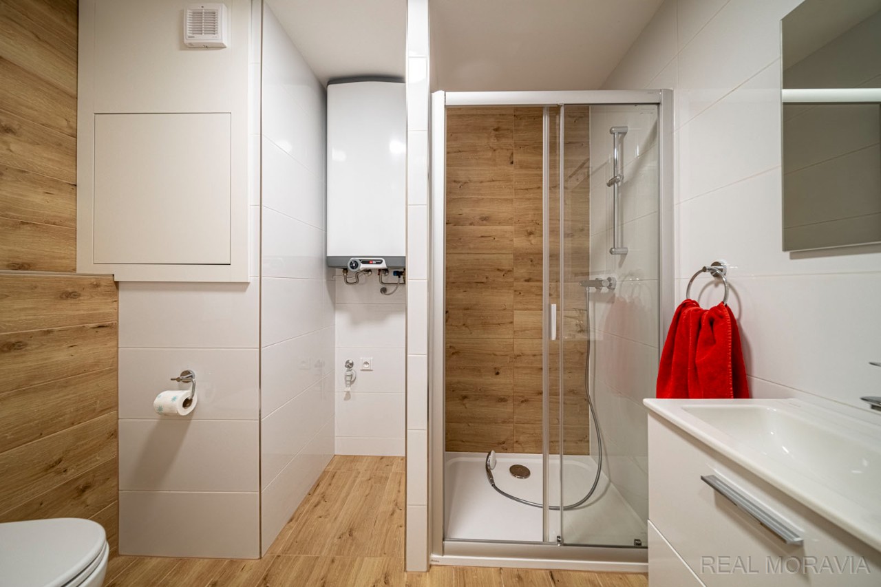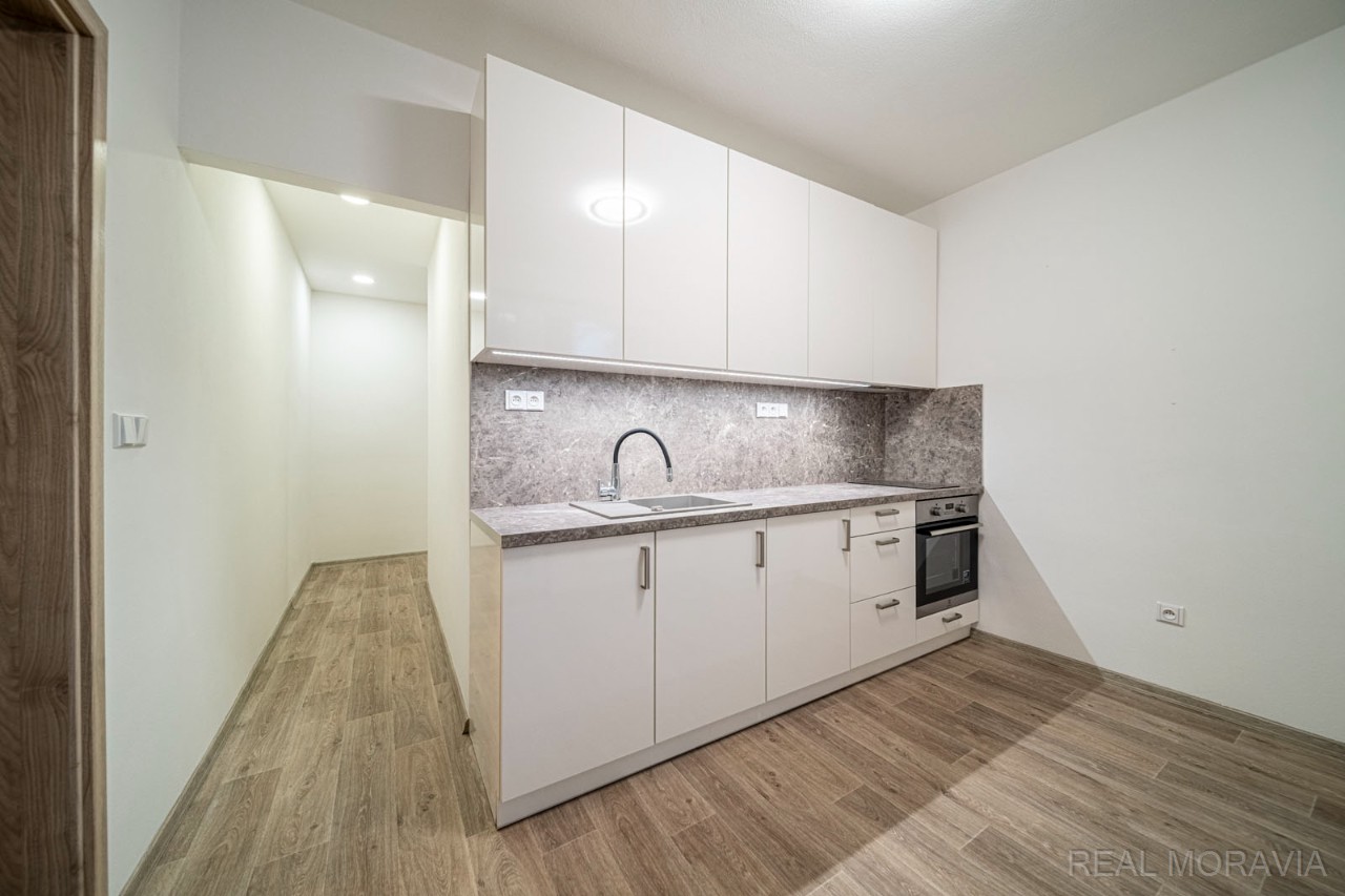 Pronájem krásného bytu 1+1 v centru města Uherské Hradiště, Stará Tenice. Podlahová plocha 35m², byt umístěn v 1.NP (zvýšené přízemí). Byt po kompletní rekonstrukci, plastová okna s vnitřními žaluziemi, podlahy plovoucí, 2 x balkon, bytový dům pouze čtyřpodlažní. Vnitřní dispozice: vstupní chodba, koupelna se sprchovým koutem, umyvadlem a zabudovaným WC (Geberit), kuchyně s jídelním koutem a balkonem č.1, pokoj s balkonem č. 2. Byt je vybaven kuchyňskou linkou na míru, potravinovou skříní a velkou šatní skříní v pokoji. Parkování je možné zdarma přímo před domem. Součástí pronájmu je sklepní kóje o rozloze 3 m² v suterénu bytového domu. Cena za pronájem 9 300 Kč /měsíc, zálohy na vodné/stočné 600 Kč/měsíc, plus zálohy na elektřinu 3 000 Kč/měsíc, kauce 18 600 Kč. El. energie se přepisuje na nájemníka. Byt je vhodný pro jednu osobu. Klidná, tichá lokalita. Volné ihned.