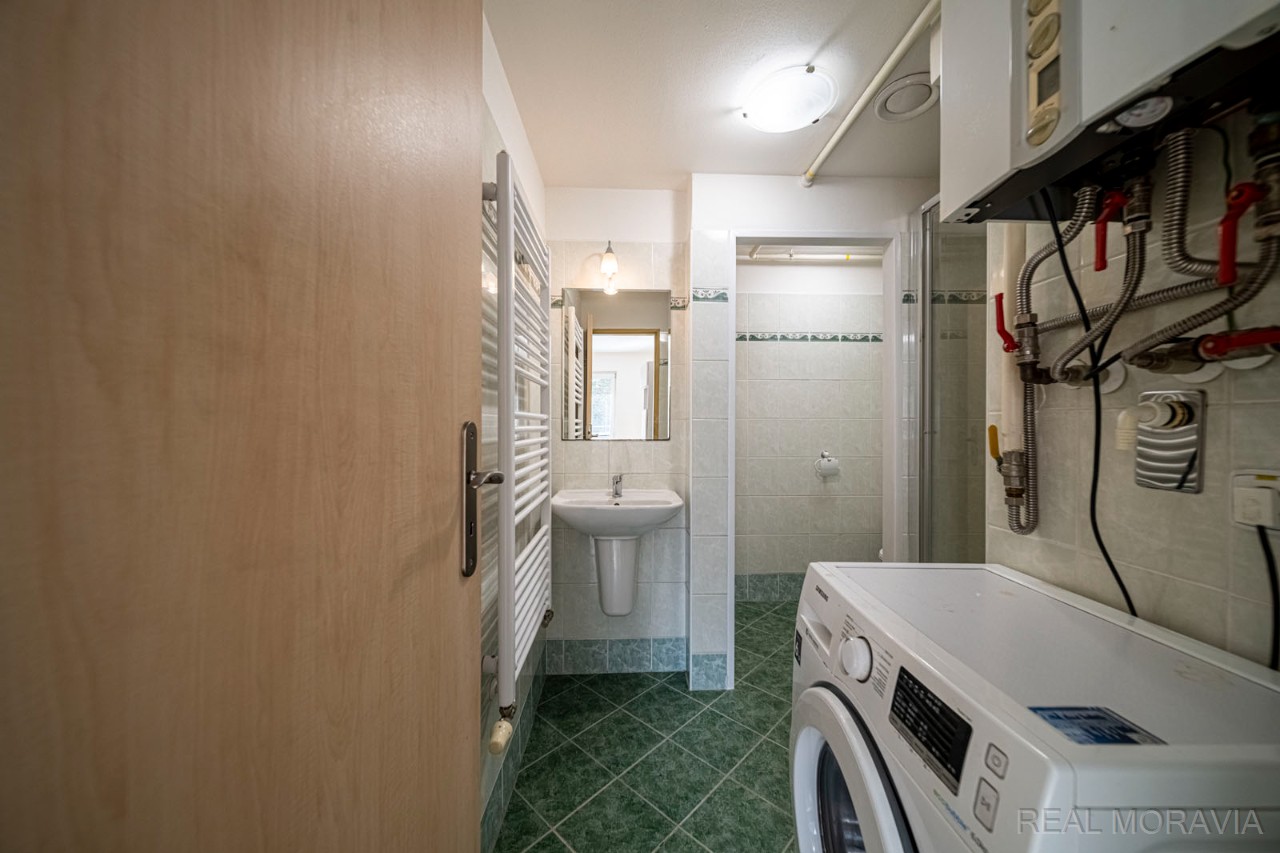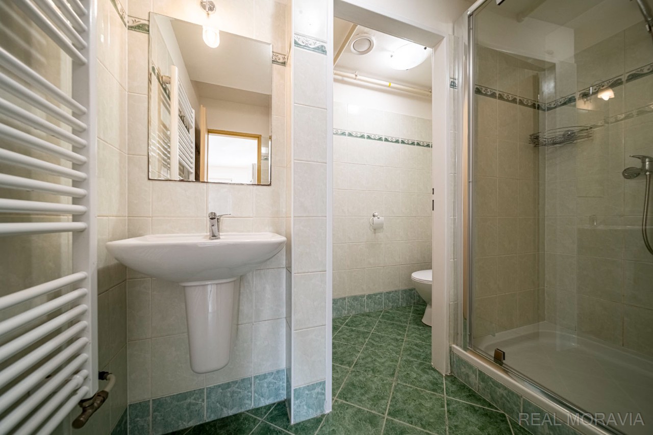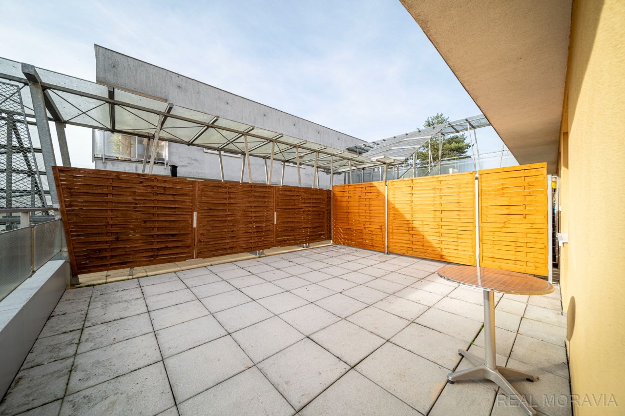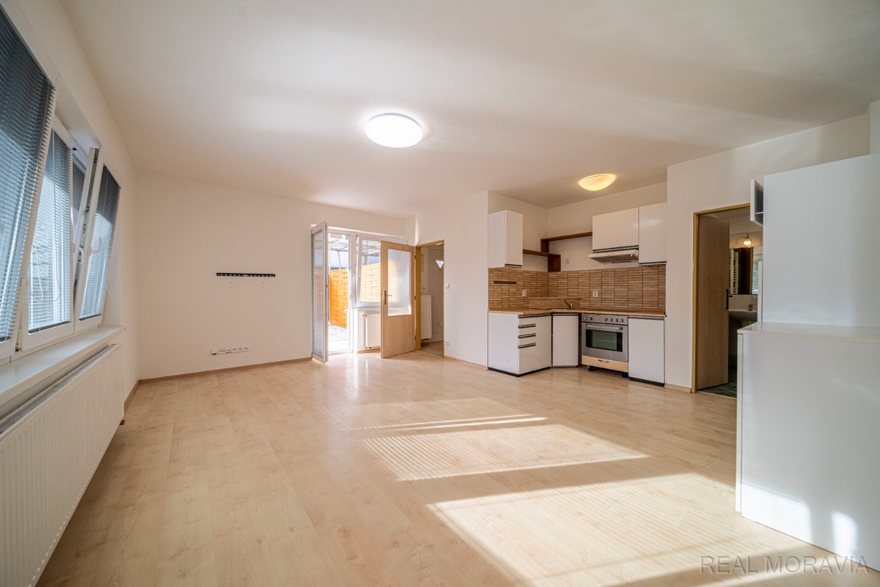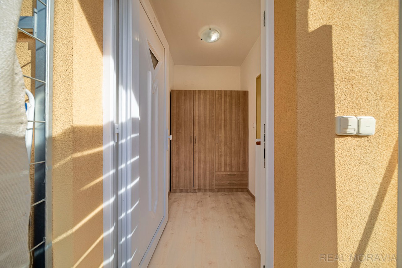 Prodej bytu 1+kk v osobním vlastnictví v lokalitě Kvítkovice, ul. Hlavní, Otrokovice. Podlahová plocha bytu činí 37,3m² + cca 24m² velká terasa (soukromá, přístupná pouze z předmětného bytu). Byt umístěn ve 2. NP (1. patro), vchodové dveře plastové, okna plastová s dvoj-skly, podlahy betonové kryté plovoucími podlahami (laminátové) a dlažba v koupelně. Vnitřní dispozice: vstupní chodba, pokoj s kuchyňským koutem a s výstupem na terasu, koupelna se sprchovým koutem, WC samostatné přístupné přes koupelnu. Vytápění bytu a ohřev teplé vody zajišťuje vlastní plynový kotel. K bytu náleží drátěná sklepní kóje umístěná na podlaží. Parkování zdarma na obecním parkovišti u domu. Měsíční platby 1869,- Kč/měsíc (vodné, stočné, správa domu, fond oprav, pojištění stavby atd.) + 1500,- Kč/měsíc zálohy na energie (plyn, elektřina). Výstavba provedena v r. 2008 - nadstavba nad stávající, původní objekt. Volné ihned. Klidná, tichá lokalita.